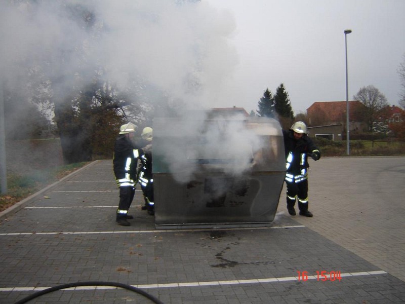 An diesem Nachmittag wurden wir zu einen Papiercontainer am ALDI-Parkplatz gerufen, der in Brand geraten war. Bei unseren Eintreffen brannte der Behälter in voller Ausdehnung. Der Container wurde geöffnet und ausgekippt. Das darin befindliche in Brand geratene Papier wurde daraufhin mittels einen C-Rohr abgelöscht. Zur Brandursache können derzeit noch keine Angaben gemacht werden. Die Polizei hat die Ermittlungen übernommen.