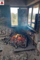 Der Leitstelle Estmecklenburg wurde ein Brand in einem leerstehenden Bahngebäude gemeldet. Vor Ort eingetroffen bestätigte sich das Alarmstichwort. Offensichtlich wurde in dem alten Stellwerk brennbares Material zu einem Lagerfeuer aufgetürmt und angezündet. Der Brand drohte über den Dachkasten auf das Dach überzugreifen. Wir löschten das Feuer mit einen C-Rohr unter Atemschutz. Danach übergaben wir die Einsatzstelle an die Polizei.
