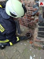 Eine unachtsame Krähe war am Samstagnachmittag auf der Festung vom Dach des Kommandantenhauses gefallen und in ein Fallrohr gestürzt. Da sie sich aus dieser Notlage nicht allein befreien konnte, machte sie lautstark auf sich aufmerksam. Besucher der Festung bemerkten dieses und alarmierten die Feuerwehr. Wir entfernten Teile des Fallrohres und sorgten für einen Ausgang, den der Vogel dankend annahm und schnell davonflog. Leider ohne zuvor ein gemeinsames Erinnerungsfoto mit den ehrenamtlichen Rettern zu machen. Uns blieb also nur die Dachentwässerung wieder instand zu setzen und anschließend zufrieden ob der gelungenen Rettung den Einsatz zu beenden.